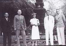 | 1938年 インドネシアにて 歴史博物館で民俗衣装勉強中の 千代が藤山愛一郎氏と偶然出会う 右から二人目藤山愛一郎氏 |