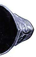 神印 (熊の頭) の木彫が付< 麻縄を編んだ帯状の上に木の皮を縒って留めてある 頭 5.5cm 胴 鉢巻部33cm 尾 10cm |