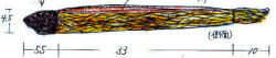 ![]() 下は図解 木彫 塗物 (黒と朱の漆) 長さ 34.5cm |