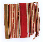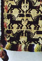 ![]() 上は部分画像 獣毛、平織と幾何学模様の経二重織の両面織縞 |