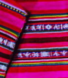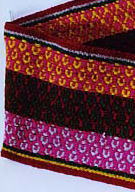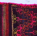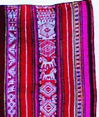 獣毛、平織縞と経緯二重織の縞 伝統の太陽、コンドル、波。馬模様 布端はチューブ状の始末(リベテ) 100×84cm ![]() |
