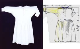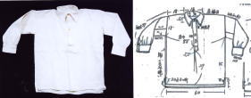 生成り木綿 背丈 43cm スカート丈 60cm 袖丈 44cm(カフス6含む) 服巾 50cm 袖巾 18cm 腋に14cm角のマチ入り 前明き 25cm |