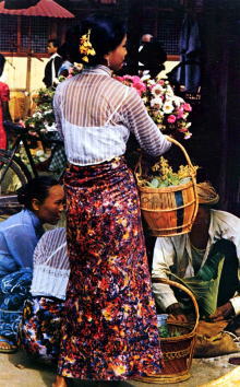 | 1962年 マレイシアのコタバルにて この地でよく見かける女性の優雅 な外出着 |